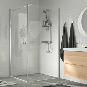 - Cast Stone Resin Walk In Shower Tray with 1000mm Easy Clean Fixed Glass Shower Screen OR